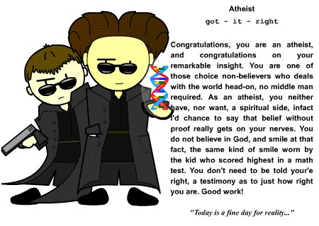 In bars frequented by colossal death robots, you're always the quiet guy at the back who no-one ever bothers. And for good reason. You've fought in several nuclear wars, could beat the sun in a staring match, and have a chin larger than many articles of furniture. Morals are not a concept you understand, but strangely enough, nobody ever questions your judgement. Usually because they're dead. Even Judge Dredd wets himself when you turn up. Grrrr.
